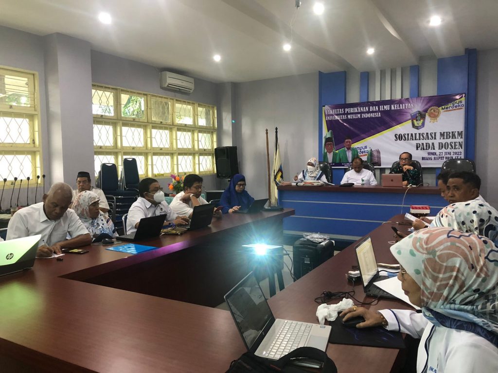 Fakultas Perikanan dan Ilmu Kelautan UMI Makassar mengadakan sosialisasi Merdeka Belajar Kampus Merdeka. Untuk Tenaga Pendidik (Dosen) diselenggarakan pada hari Senin 27 Juni 2022 sedangkan Sosialisasi untuk Mahasiswa dilaksanakan pada hari Selasa 28 Juni 2022 di Ruangan Rapat Aula Lt.1 Fakultas Perikanan dan Ilmu Kelautan UMI.